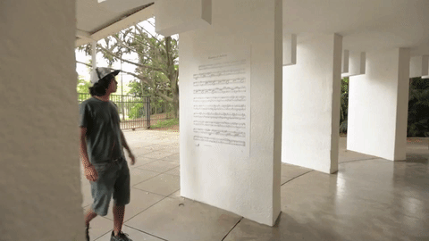 At first sight, a musical score. At a closer look, the lines were replaced by the entire book, word by word.